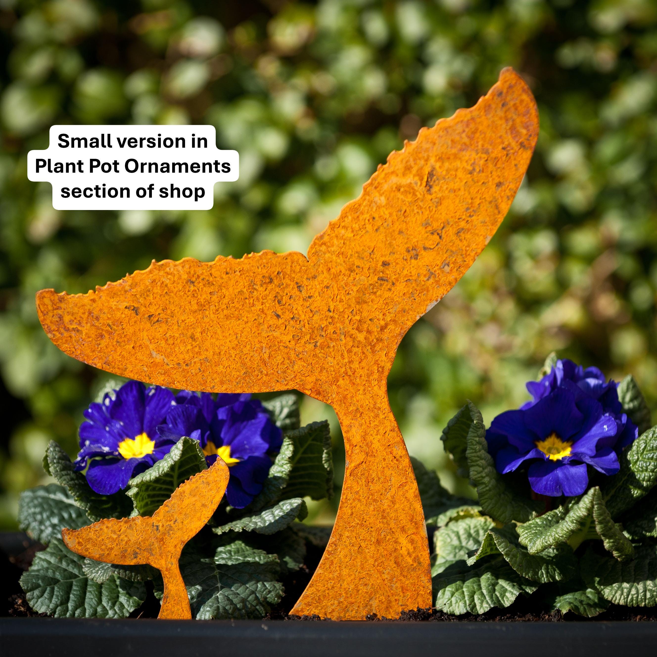 Elegant Whale Tail, Metal Lawn Ornament, Rusty Garden Art, Plant Pot ornament, Window Box Decoration, Gardener Gifts, Ready To Rust